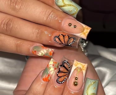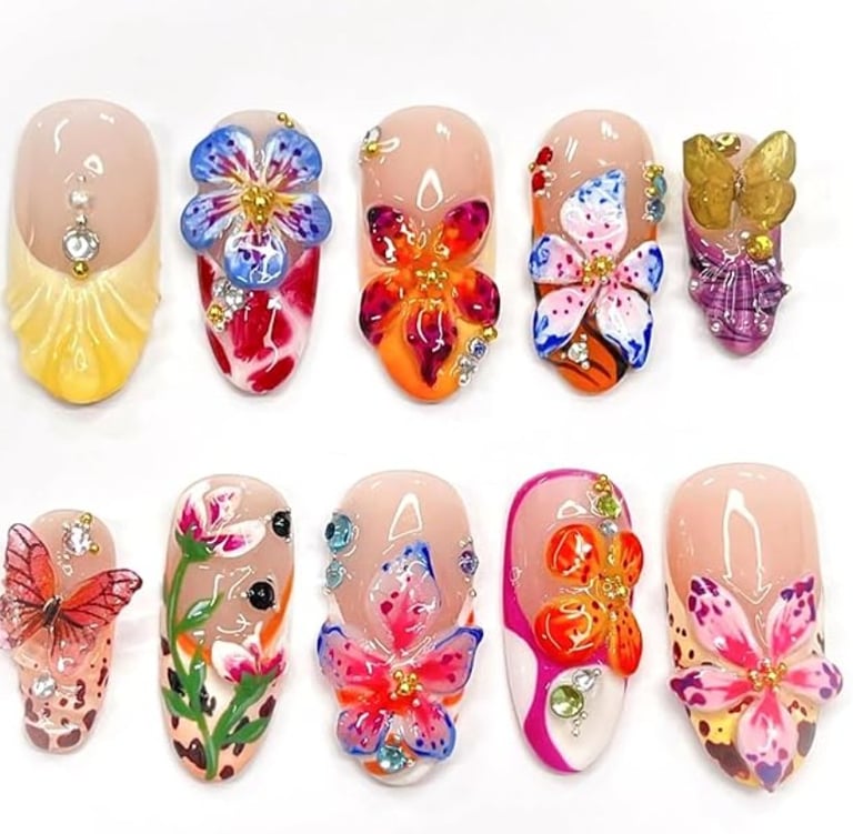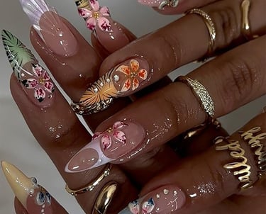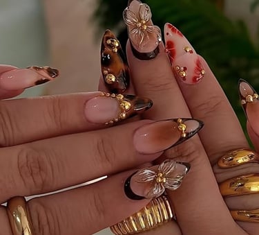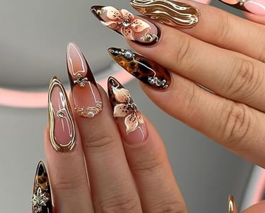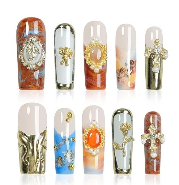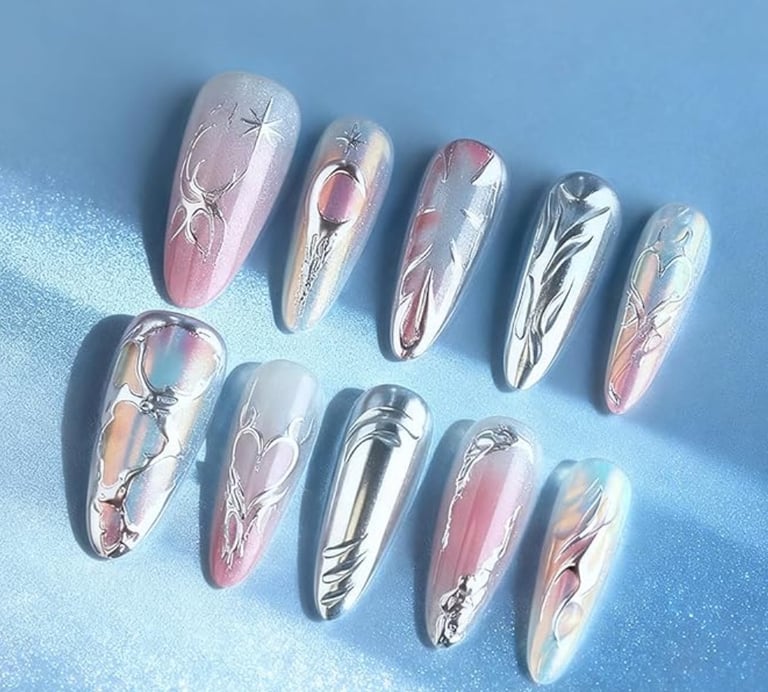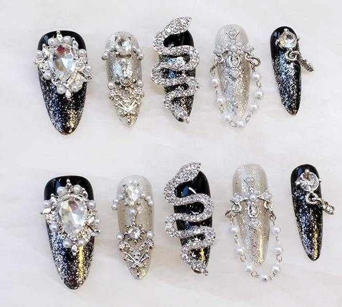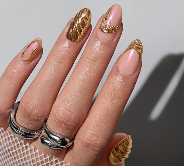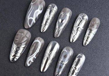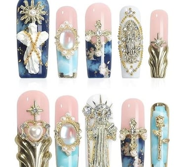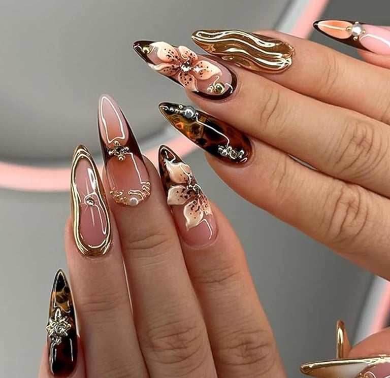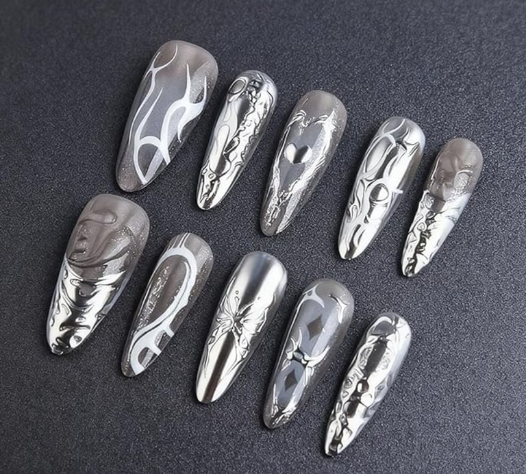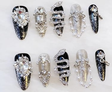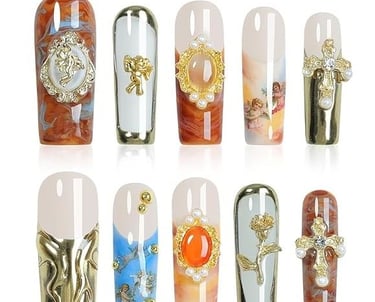 High-fashion nails featuring intricate, eye-catching designs with a touch of luxury.